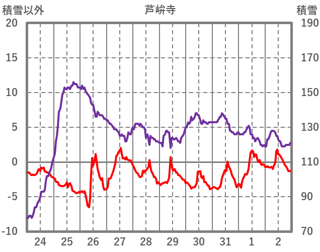 | 日 | 時 | 気温 | 降水 | 風向/風速 | 日照 | 積雪 | 降雪 |
