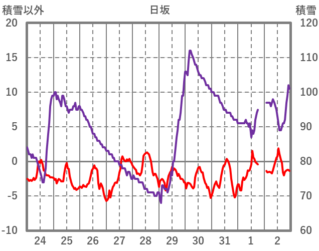 | 日 | 時 | 気温 | 降水 | 風向/風速 | 日照 | 積雪 | 降雪 |