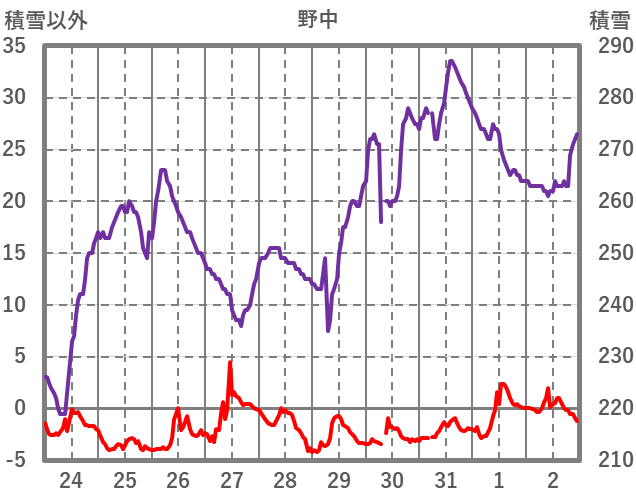 | 日 | 時 | 気温 | 降水 | 風向/風速 | 日照 | 積雪 | 降雪 |