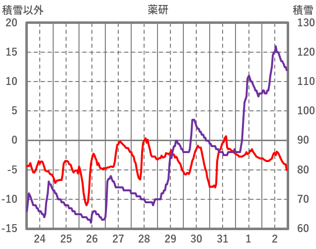 | 日 | 時 | 気温 | 降水 | 風向/風速 | 日照 | 積雪 | 降雪 |