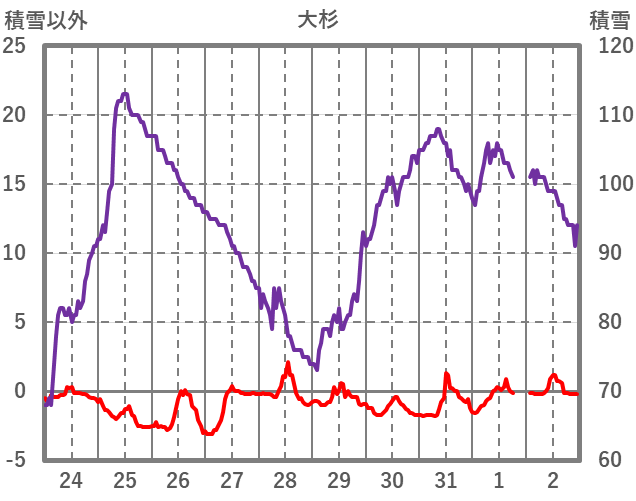 | 日 | 時 | 気温 | 降水 | 風向/風速 | 日照 | 積雪 | 降雪 |