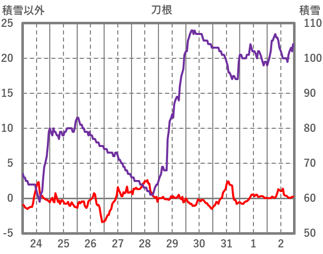 | 日 | 時 | 気温 | 降水 | 風向/風速 | 日照 | 積雪 | 降雪 |