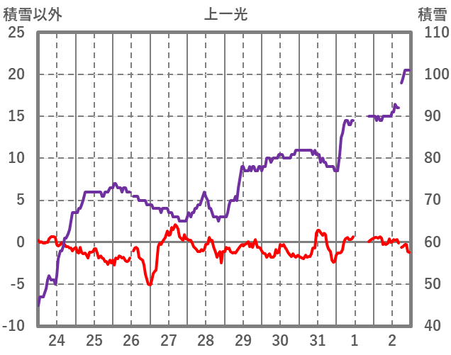 | 日 | 時 | 気温 | 降水 | 風向/風速 | 日照 | 積雪 | 降雪 |