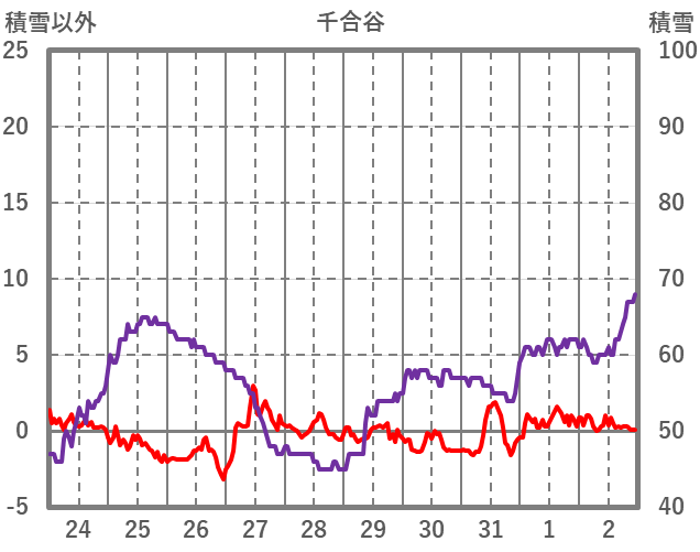 | 日 | 時 | 気温 | 降水 | 風向/風速 | 日照 | 積雪 | 降雪 |