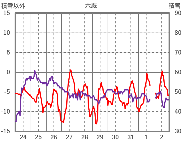| 日 | 時 | 気温 | 降水 | 風向/風速 | 日照 | 積雪 | 降雪 |