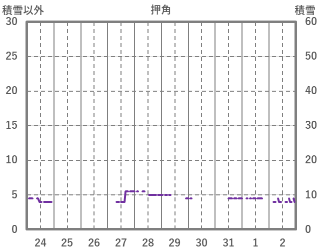 | 日 | 時 | 気温 | 降水 | 風向/風速 | 日照 | 積雪 | 降雪 |