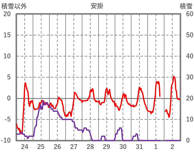| 日 | 時 | 気温 | 降水 | 風向/風速 | 日照 | 積雪 | 降雪 |