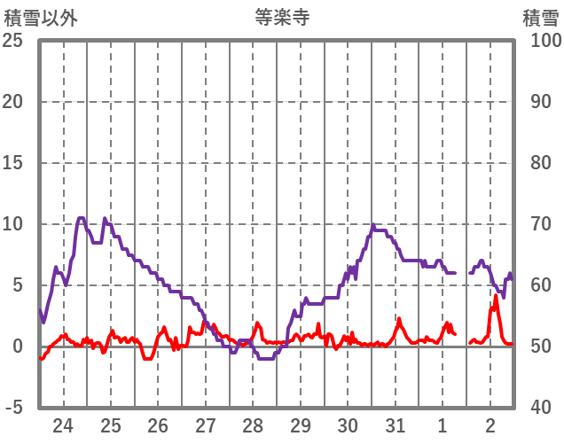 | 日 | 時 | 気温 | 降水 | 風向/風速 | 日照 | 積雪 | 降雪 |