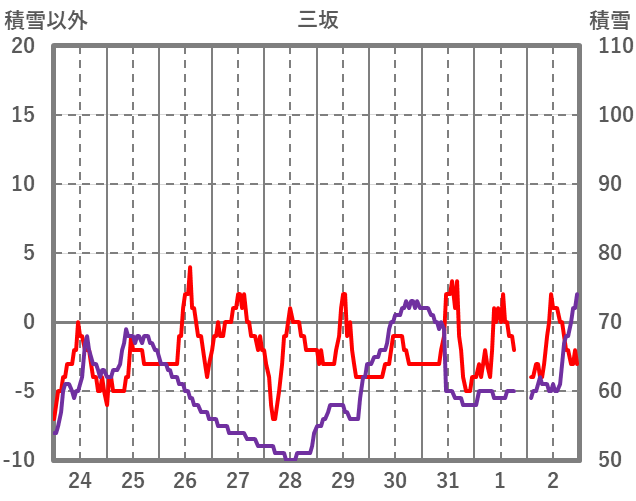 | 日 | 時 | 気温 | 降水 | 風向/風速 | 日照 | 積雪 | 降雪 |