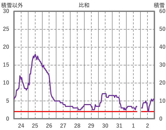 | 日 | 時 | 気温 | 降水 | 風向/風速 | 日照 | 積雪 | 降雪 |