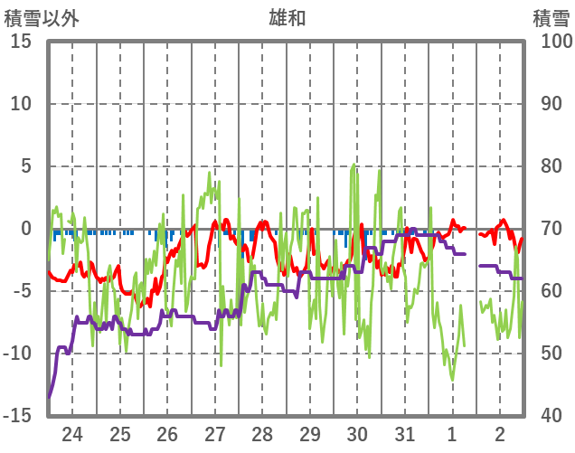 | 日 | 時 | 気温 | 降水 | 風向/風速 | 日照 | 積雪 | 降雪 |