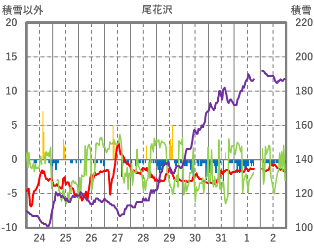 | 日 | 時 | 気温 | 降水 | 風向/風速 | 日照 | 積雪 | 降雪 |