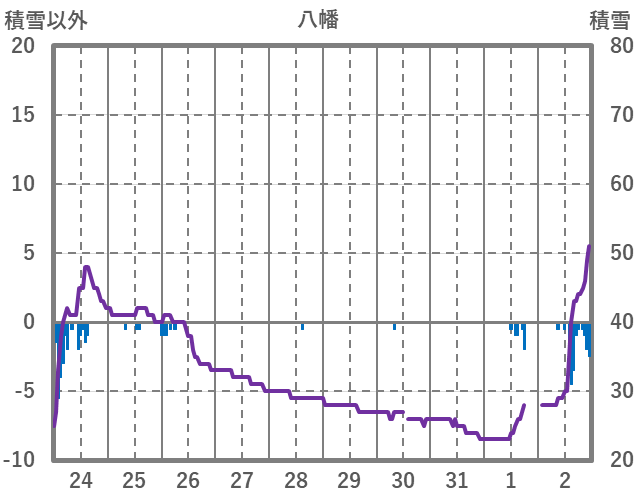 | 日 | 時 | 気温 | 降水 | 風向/風速 | 日照 | 積雪 | 降雪 |