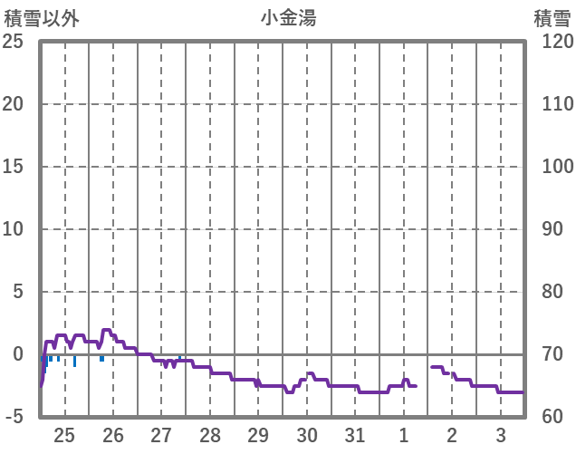 | 日 | 時 | 気温 | 降水 | 風向/風速 | 日照 | 積雪 | 降雪 |