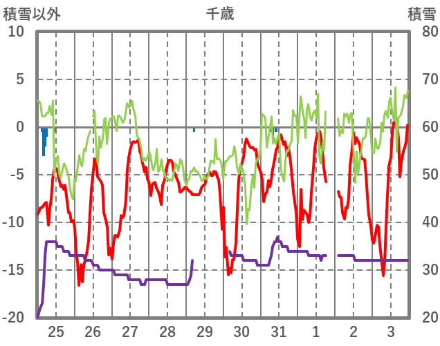 | 日 | 時 | 気温 | 降水 | 風向/風速 | 日照 | 積雪 | 降雪 |