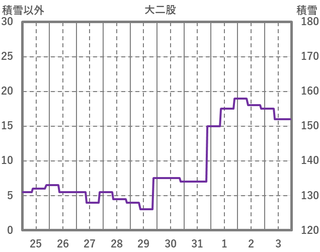| 日 | 時 | 気温 | 降水 | 風向/風速 | 日照 | 積雪 | 降雪 |