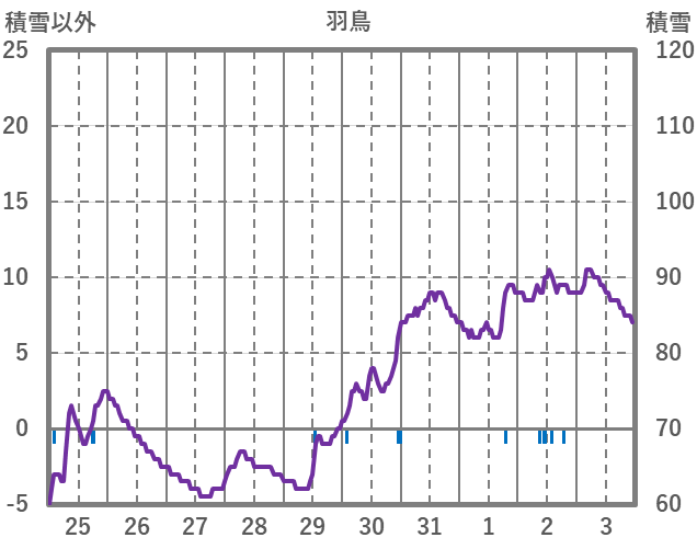 | 日 | 時 | 気温 | 降水 | 風向/風速 | 日照 | 積雪 | 降雪 |