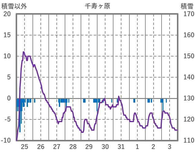 | 日 | 時 | 気温 | 降水 | 風向/風速 | 日照 | 積雪 | 降雪 |