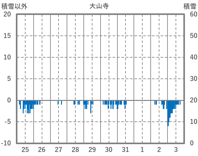 | 日 | 時 | 気温 | 降水 | 風向/風速 | 日照 | 積雪 | 降雪 |