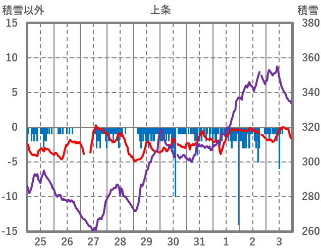 | 日 | 時 | 気温 | 降水 | 風向/風速 | 日照 | 積雪 | 降雪 |