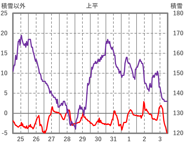 | 日 | 時 | 気温 | 降水 | 風向/風速 | 日照 | 積雪 | 降雪 |