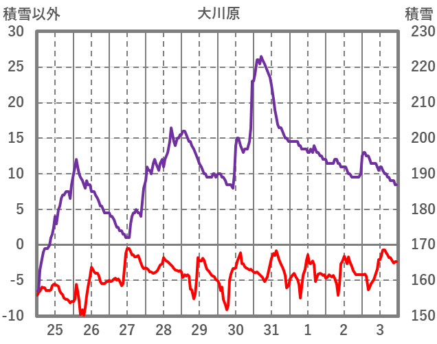 | 日 | 時 | 気温 | 降水 | 風向/風速 | 日照 | 積雪 | 降雪 |