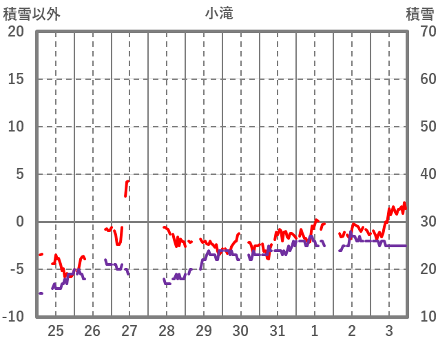 | 日 | 時 | 気温 | 降水 | 風向/風速 | 日照 | 積雪 | 降雪 |