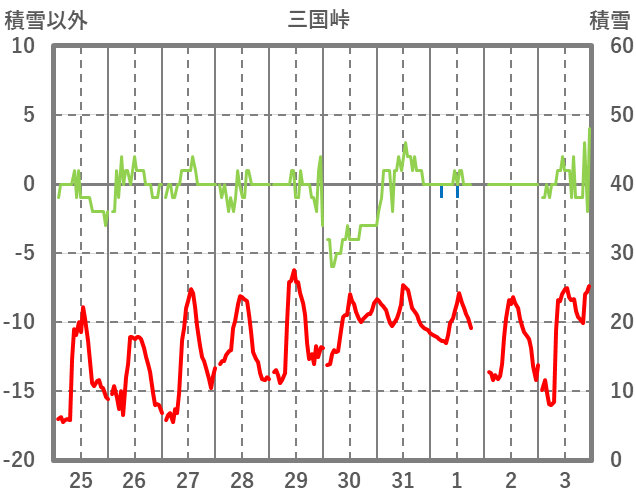 | 日 | 時 | 気温 | 降水 | 風向/風速 | 日照 | 積雪 | 降雪 |