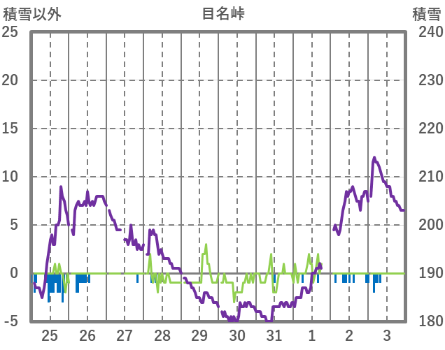 | 日 | 時 | 気温 | 降水 | 風向/風速 | 日照 | 積雪 | 降雪 |