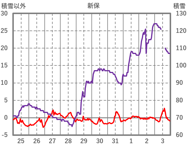 | 日 | 時 | 気温 | 降水 | 風向/風速 | 日照 | 積雪 | 降雪 |