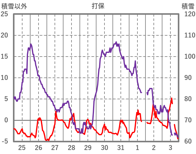| 日 | 時 | 気温 | 降水 | 風向/風速 | 日照 | 積雪 | 降雪 |