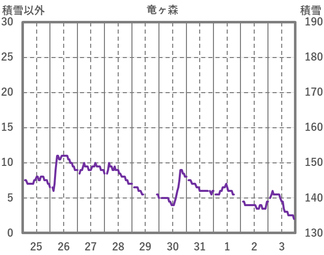 | 日 | 時 | 気温 | 降水 | 風向/風速 | 日照 | 積雪 | 降雪 |