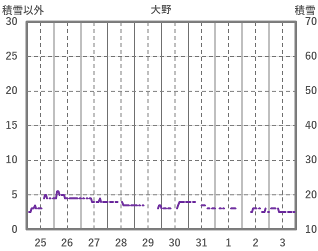 | 日 | 時 | 気温 | 降水 | 風向/風速 | 日照 | 積雪 | 降雪 |
