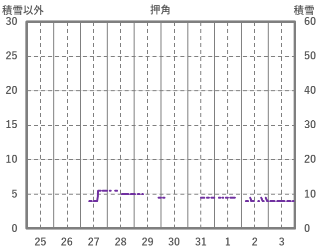 | 日 | 時 | 気温 | 降水 | 風向/風速 | 日照 | 積雪 | 降雪 |