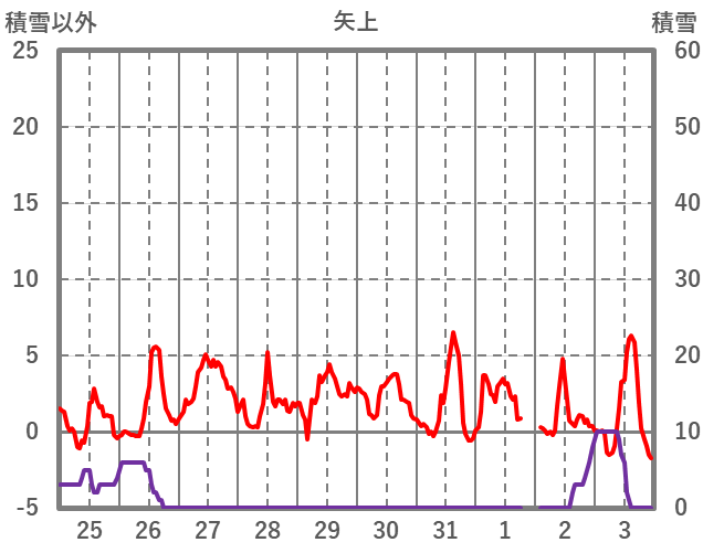 | 日 | 時 | 気温 | 降水 | 風向/風速 | 日照 | 積雪 | 降雪 |
