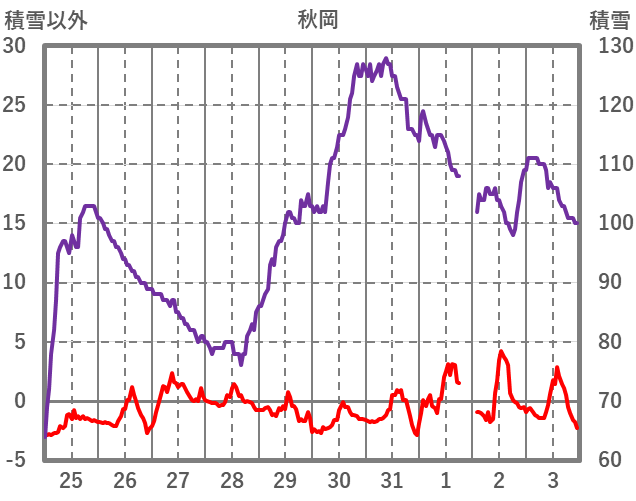 | 日 | 時 | 気温 | 降水 | 風向/風速 | 日照 | 積雪 | 降雪 |