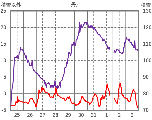 | 日 | 時 | 気温 | 降水 | 風向/風速 | 日照 | 積雪 | 降雪 |