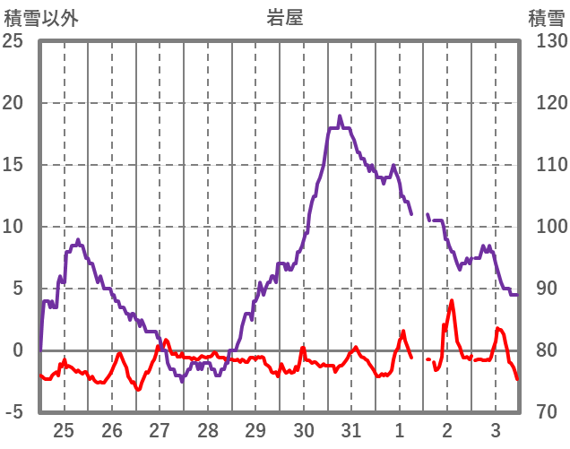 | 日 | 時 | 気温 | 降水 | 風向/風速 | 日照 | 積雪 | 降雪 |