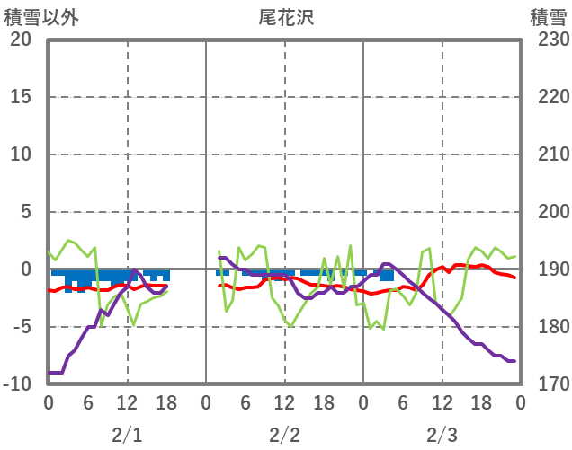 | 日 | 時 | 気温 | 降水 | 風向/風速 | 日照 | 積雪 | 降雪 |