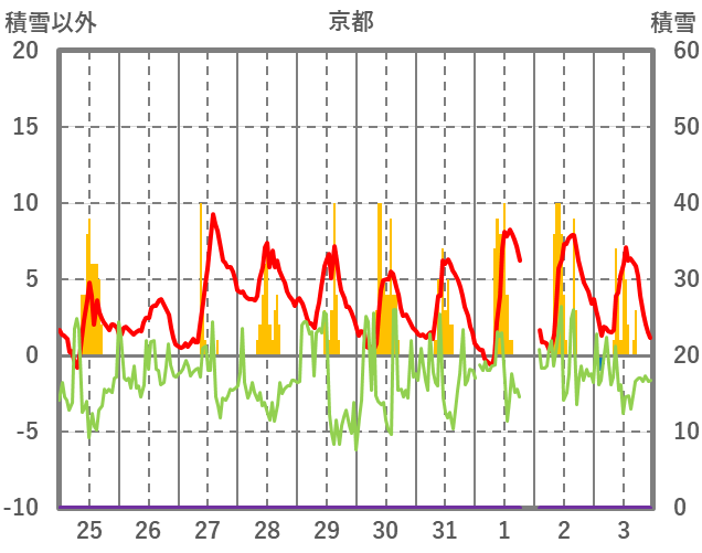 | 日 | 時 | 気温 | 降水 | 風向/風速 | 日照 | 積雪 | 降雪 |