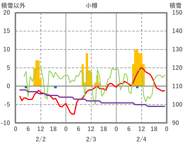 | 日 | 時 | 気温 | 降水 | 風向/風速 | 日照 | 積雪 | 降雪 |