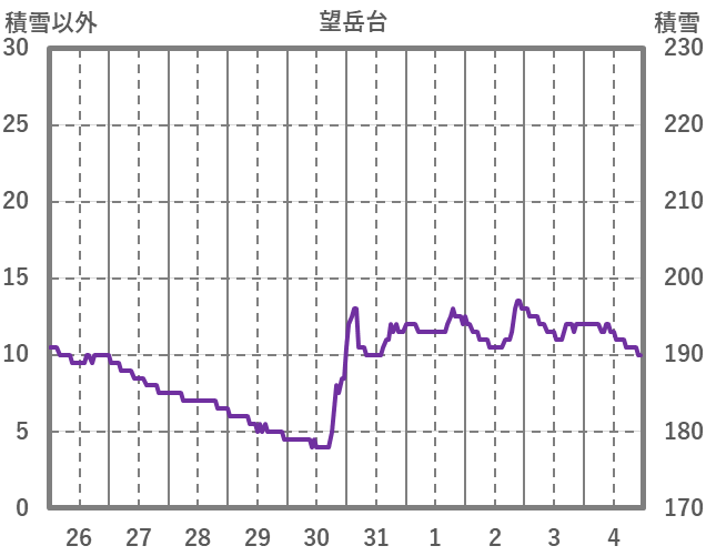 | 日 | 時 | 気温 | 降水 | 風向/風速 | 日照 | 積雪 | 降雪 |