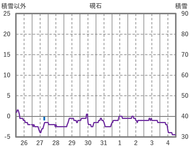 | 日 | 時 | 気温 | 降水 | 風向/風速 | 日照 | 積雪 | 降雪 |