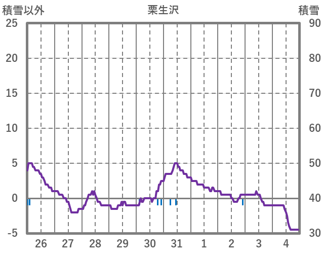 | 日 | 時 | 気温 | 降水 | 風向/風速 | 日照 | 積雪 | 降雪 |