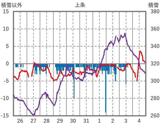 | 日 | 時 | 気温 | 降水 | 風向/風速 | 日照 | 積雪 | 降雪 |