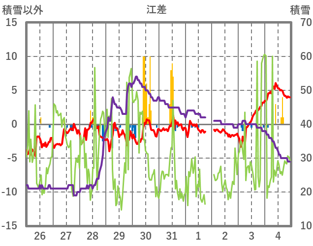 | 日 | 時 | 気温 | 降水 | 風向/風速 | 日照 | 積雪 | 降雪 |