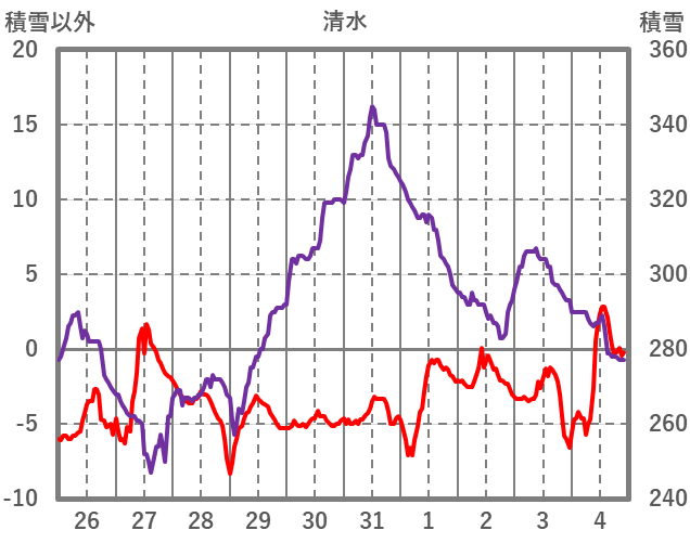 | 日 | 時 | 気温 | 降水 | 風向/風速 | 日照 | 積雪 | 降雪 |