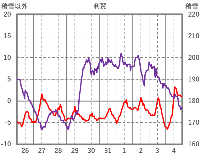 | 日 | 時 | 気温 | 降水 | 風向/風速 | 日照 | 積雪 | 降雪 |