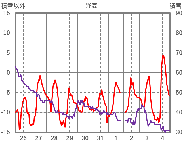 | 日 | 時 | 気温 | 降水 | 風向/風速 | 日照 | 積雪 | 降雪 |