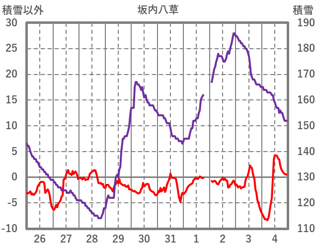 | 日 | 時 | 気温 | 降水 | 風向/風速 | 日照 | 積雪 | 降雪 |